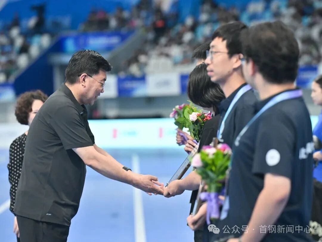 8月17日,2025世界人形机器人运动会迎来收官之日,国家速滑馆“冰丝带”内的多项决赛和关键对决陆续上演。在众多精彩赛事中,一场跳出速度与力量竞技,聚焦创意、才艺与人气的“灵机一动”技能挑战赛,成为了当天最具想象力的舞台。赛后,在“最佳人气奖”的颁奖环节,首钢集团党委书记、董事长赵民革为冠军得主广州城市理工学院机器人野狼队颁奖。