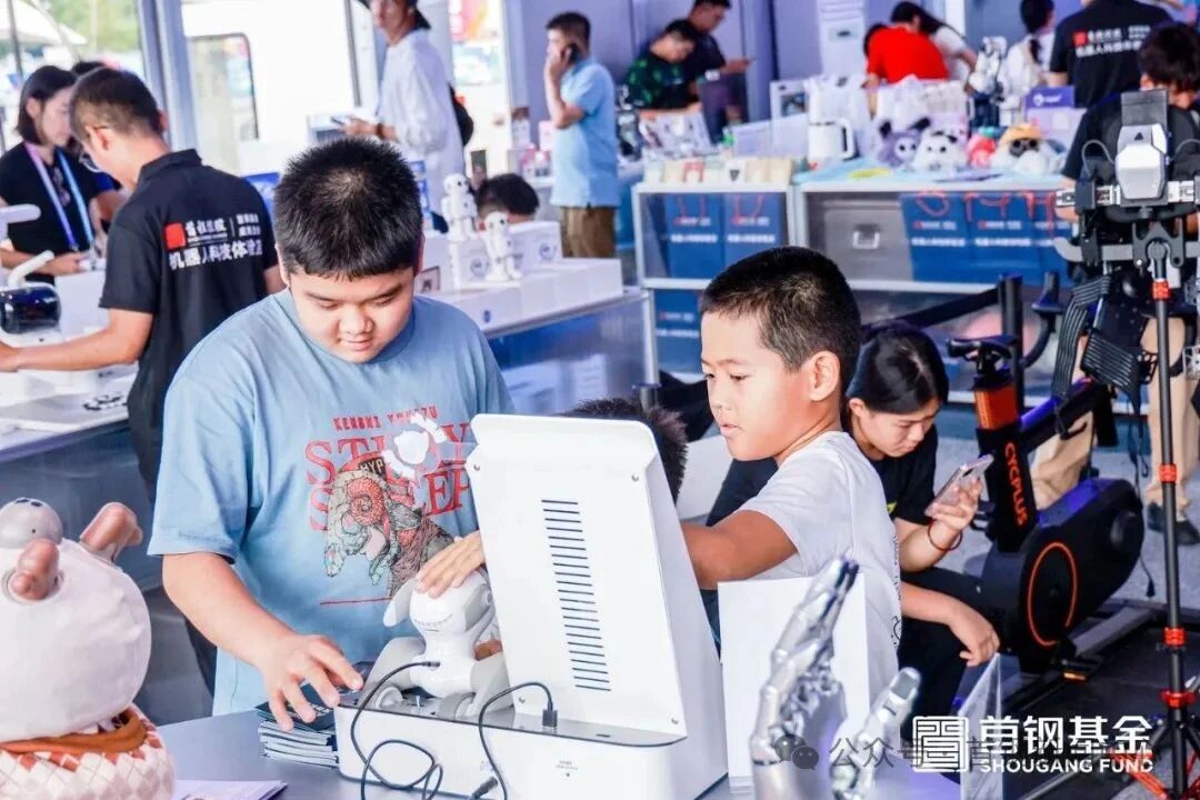 在场馆外的嘉年华互动区,首钢基金成员企业——首程控股倾力打造的“首程机器人科技体验店”也成为场馆外人气最旺的打卡点之一,高峰时段等待体验的队伍一度达到近50米。这个面积近200㎡的沉浸式空间,集结了来自宇树科技、星海图、银河通用、松延动力等生态合作企业的200余款机器人及智能产品,涵盖智慧家居、儿童教育、AI娱乐等多个领域,构建出一幅未来生活方式的多维图景。